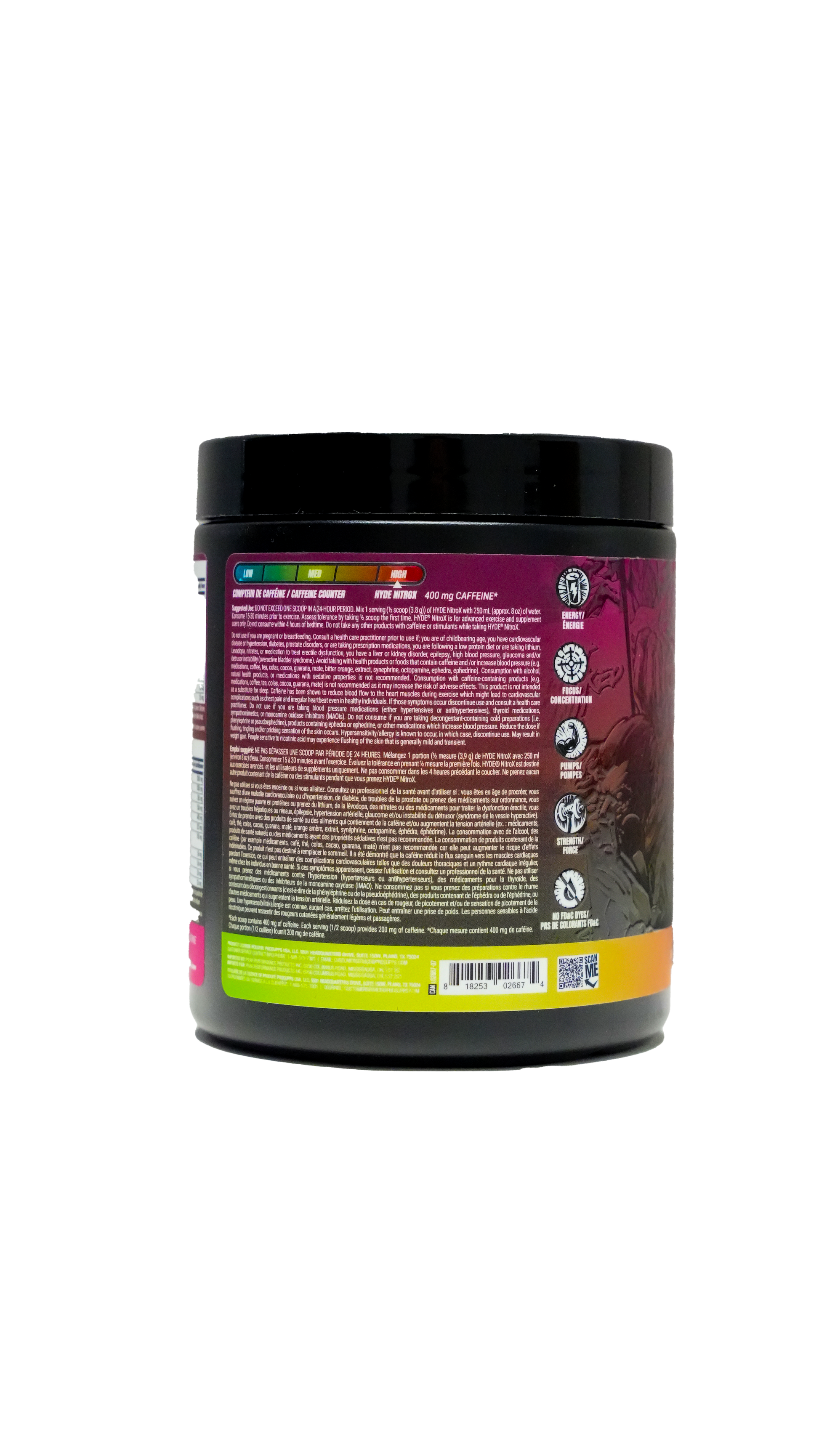 Designed for advanced users, Mr. Hyde NitroX What‑O‑Melon combines clinical ingredient dosages and thermogenic performance in an ultra‑potent formula. Begin with ½ scoop mixed with 6–8 oz water 15–30 minutes pre-workout to assess tolerance. Not recommended for beginners.